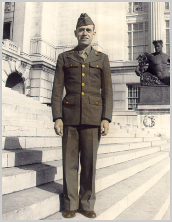 Wayne Thompson Caught In Machine By Gina Grone Hebron Journal Register Veterans Issue It was late in January, 1945. The Battle of the Bulge, Hitler's massive onslaught of the Ardennes region of Belgium, had been raging for slightly more than a month. On a bitterly cold morning in northern Luxembourg, a small country bordering Belgium on the southeast, the men of I Company, including Wayne Thompson of Bruning, prepared for the day's mission - a patrol into enemy territory. The men loaded themselves down - weapons and cartridge belts full of ammunition, bandoliers with rifle ammunition across each shoulder - Thompson carried a walkie talkie and a pack with extra batteries and wire cutters. Over the heavy wool uniforms and equipment the men added one final layer - a white sheet draped around them like a cape to camouflage them in the deep snow of the Ardennes forest. Thompson and the others walked for the better part of the day, passing alternately through wooded areas and clearings. They had encountered no resistance and the mood became casual, the men began to relax. About mid-afternoon they stepped out of the trees into a clearing and has gone about 75 yards when machine gun fire exploded around them. Received Draft Notice Two and a half years earlier, Thompson, then 35, was owner and editor of the Bruning Banner newspaper. He received his draft notice on September 3, 1943, giving him three weeks to report for duty. Thompson closed the Banner office and made arrangements for his wife, Leona, to move into a house in Belvidere, where she could be near both parents. The Army Way Thompson was sent to Fort Leonardwood, Missouri, for basic training. Thompson said he soon learned that there was "the right way, the wrong way and the Army way." His full name is William Wayne Thompson, but he had always gone by W. Wayne. When reporting for duty a sergeant asked what the initial 'W' stood for. Thompson told him, "William." The sergeant informed him that from that day forward, he was William W. Thompson. Originally assigned to the Army Corps of Engineers, Thompson was trained to be an operator of motorized air compressors, which ran machinery such as saws and jackhammers. In March of 1944 he boarded the ship Aquitania, and left for England. In June Thompson fell and fractured two ribs. "I learned later that if I hadn't been injured, I would have been part of the D-Day invasion on June 6," he said. Became Infantry Rifleman Heavy casualties plagued the infantry, which began calling for replacements from other branches of the Army. Thompson was assigned as one of those replacements and became a combat infantry rifleman. He and the others crossed the English Channel and landed on Omaha Beach. They were headed for a staging area east of Paris. "We rode on eight-and- forties," Thompson said. "Those were vintage World War I train cars that were made to carry eight horses or 40 men." When he arrived at the staging area, Thompson was assigned to the 11th Regiment of the 5th Division in the 3rd Army, which was commanded by General George S. Patton. House to House Fighting The 3rd Army made its way east toward Germany, fighting in several battles and skirmishes, including the liberation of the city of Metz, France. Working their way across the German border, the army crossed the Sauer River and crashed into Saurlautern, where they engaged in what Thompson called "house to house fighting." "The houses were like duplexes - they had solid rock walls between them," he said. "There were snipers all around us. When they'd get into a house, instead of going all the way around the house, we'd blast through the wall and go through the hole. By the time we'd get in there, the snipers would be gone, so we'd blast through to the next house," he said. "We were only there for about two days when we got the call to pull out. We didn't know what for - we thought we were getting rest" Panzer Armies Attack On December 16, when the 3rd Army began clearing out Saurlatern, Hitler's Panzer armies launched their attack on the Ardennes. Unbeknownst to Allied intelligence, Hitler had managed to position 250,000 troops opposite the eastern border of Belgium. After the Panzer armies struck, Thompson's group was sent to the northern part of Luxembourg to help stem the German advance on the south flank of the Battle of the Bulge. Outpost Duty Trudging northward the the Thompson's company entered entered Luxembourg. Going farther north they crossed the Saar River, where Thompson was assigned outpost duty. "We were on the south side of the Saar River. We watched for troops that might try to cross the river heading south." "They were shelling that area the whole time we were there," he said. "At night they shot off so many flares it was as bright as day at times." Night Patrols Thompson's group also ran patrols at night into enemy territory, with the objective of taking prisoners, if possible, and gathering information on Germany defenses. They made several of these patrols, crossing the river under icy moonlight in rubber assault boats, always draped in their white camouflage sheets. Many times the men crossed the river undetected, but did run into German troops a few times. It was on a similar patrol, only a few days before the Battle of the Bulge was to end, that Thompson and the members of his company stepped into the clearing and were greeted with machine gun fire. Saved By Battery Pack "We got about to the middle of the clearing, and that's when we got caught in the machine gun cross fire," he said. "there was noting to do but drop - for some of them it was too late to drop. As far as I know, I'm the only one that survived." "I don't think I would have if it weren't for the pack with my batteries and the wire cutters," Thompson said. He believes that the gunfire struck his pack and the force knocked him down into the two foot snow. Thompson stayed down, camouflaged by his sheet, and dared not move. "I could wiggle my fingers and my toe